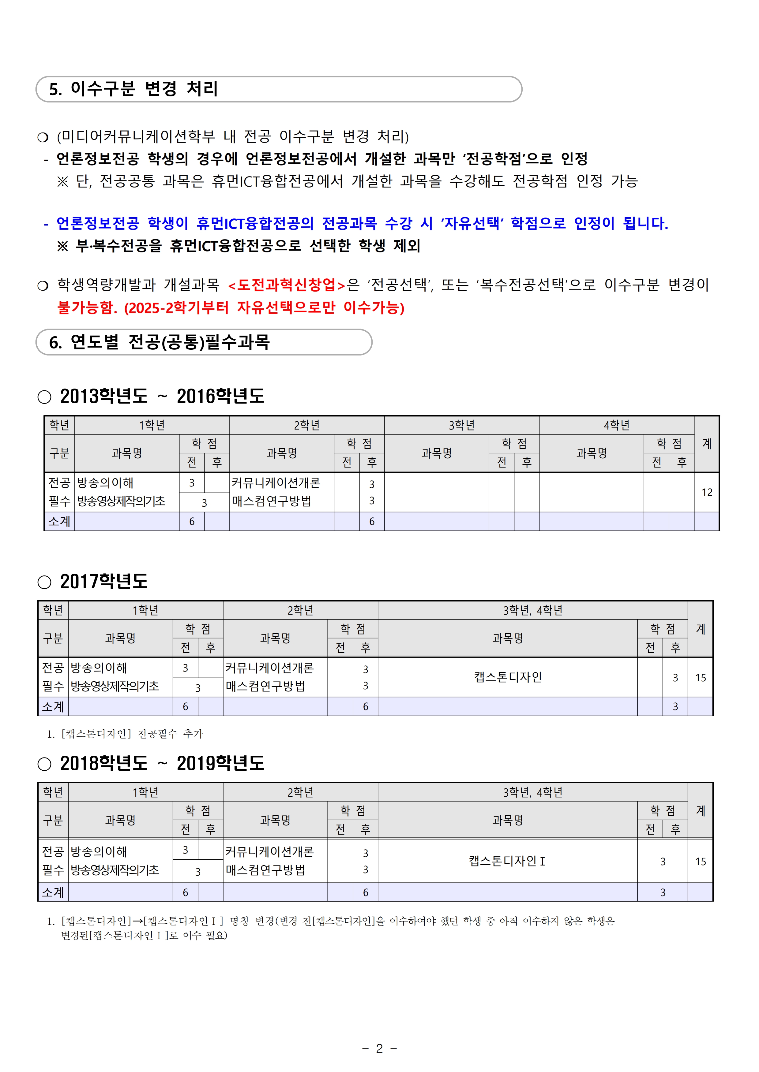 · [미디어커뮤니케이션개론] 추가 · [캡스톤디자인Ⅰ] 폐지 |