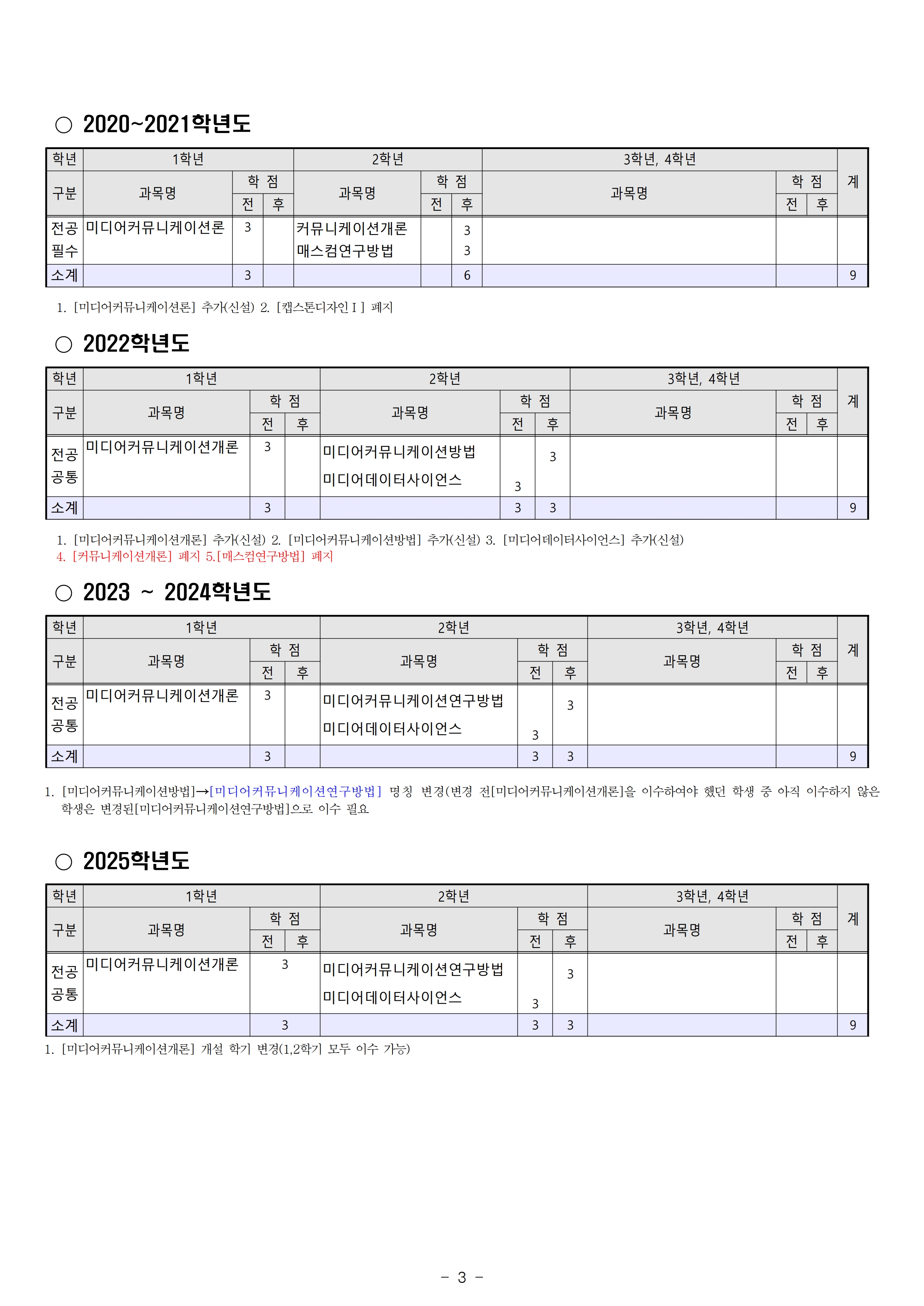 · [미디어데이터사이언스] 추가 · [커뮤니케이션개론] , [매스컴연구방법] 폐지 |