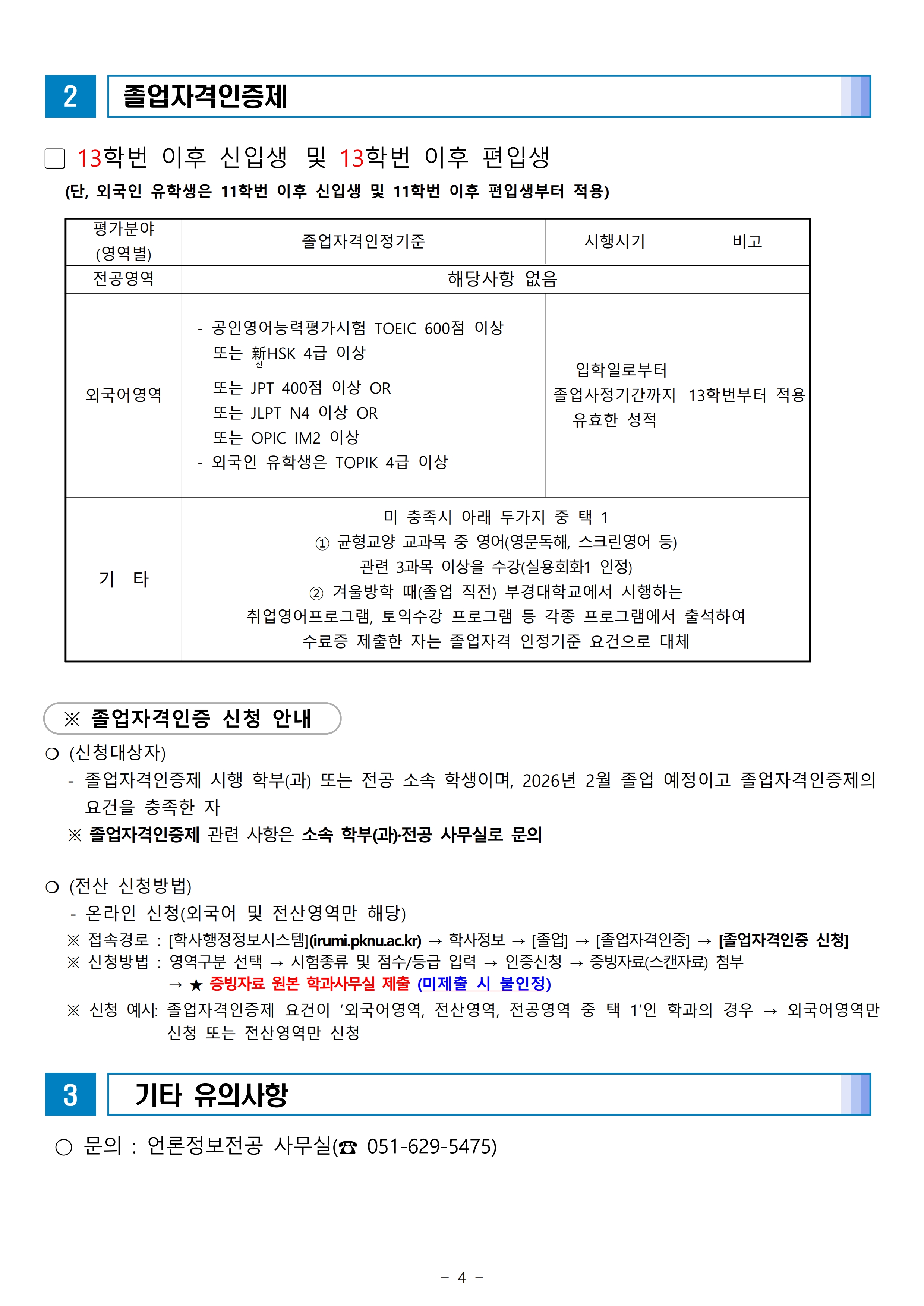 미디어커뮤니케이션학부 졸업 조건(2025학년도 기준)