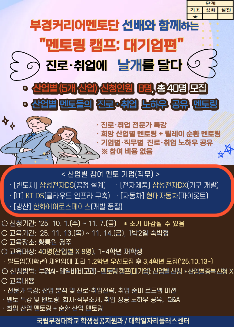2025년 재학생맞춤형고용서비스 사업「부경커리어멘토단 멘토링 캠프:대기업」참여자 모집